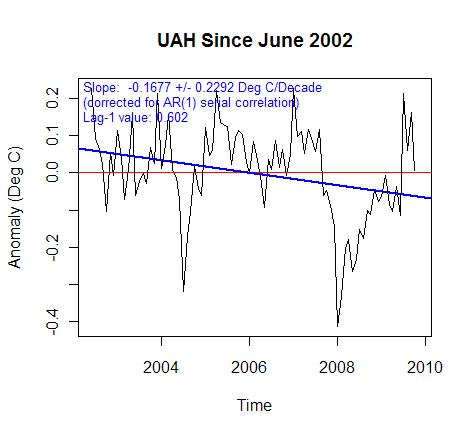 Marohasy further notes that for the last 8 years (2001-08), GISS shows a temperature anomaly of +0.1C, NCDC shows no change, BMO/UEA has a -0.9C, RSS has -1.1C and UAH has -0.6C. Only GISS shows an increasing temperature through the 8 year period.
