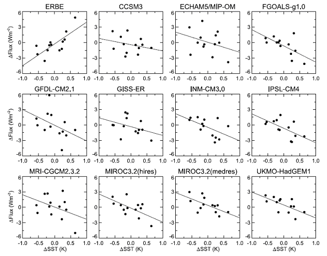 Evans says: “satellites have measured the outgoing radiation from the earth and found that the earth gives off more heat when the surface is warmer, and less heat in months when the earth’s surface is cooler. Who could have guessed? But the climate models say the opposite, that the Earth gives off less heat when the surface is warmer, because they trap heat too aggressively (positive feedback). Again, the climate models are violently at odds with reality.”