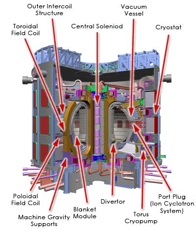 Below is a cut-away of the Iter reactor design and brief description of the elements of the reactor from Howstuffworks.com
