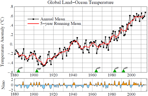 For something more recent, see the chart below. Note how similar the temperature trend from 1910 to 1940 is to the temperature trend from 1975 to 1998.
