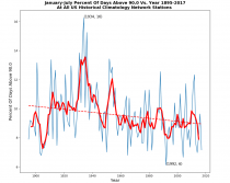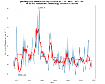 January-July Percent of Days Above (90; 95; 100F) VS year 1895 -2017 At All US Historical Climatology Monitoring Station