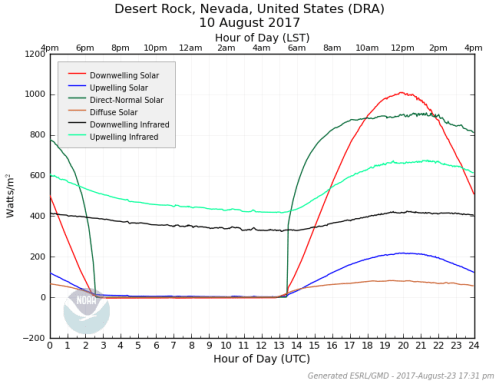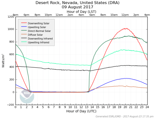 The principal data of the SURFRAD project is the measurements of six radiation observed near groundlevel: Downwelling Solar, Upwelling Solar, Direct-Normal Solar, Diffuse [Downwelling] Solar, Downwelling IR, and Upwelling IR. The idea of the GHE is about both radiation and temperature, so the measurement of air temperature at the same time of the radiation measurements is also clearly important.