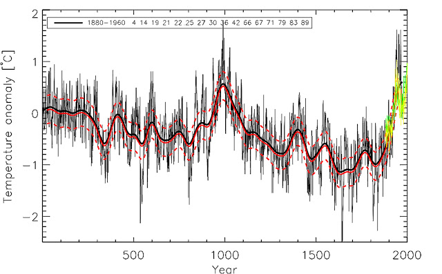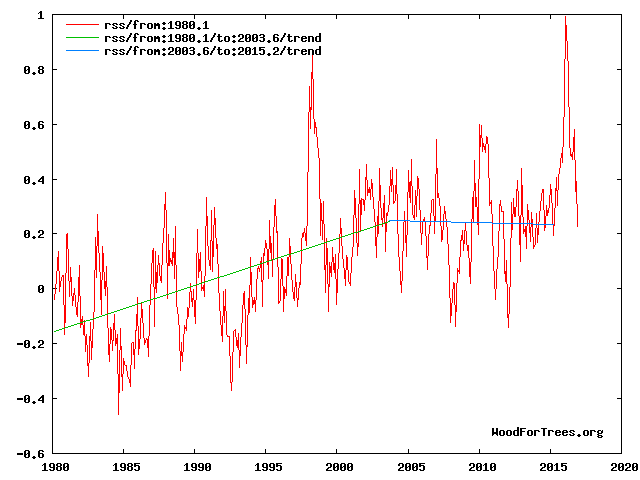 Now eyeballing the charts, it looks like the strong El Ninos, a natural occurrence, are the major mover of the global temperatures.